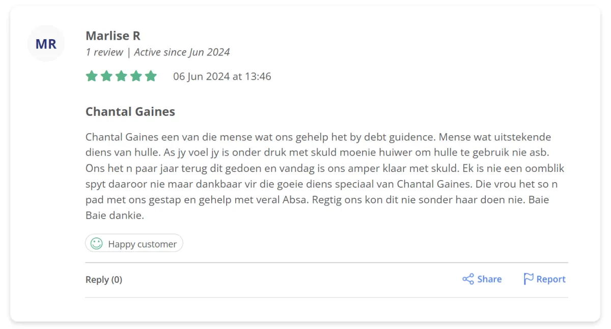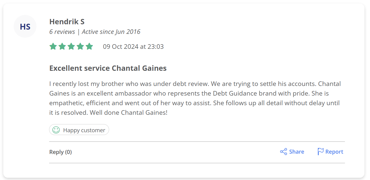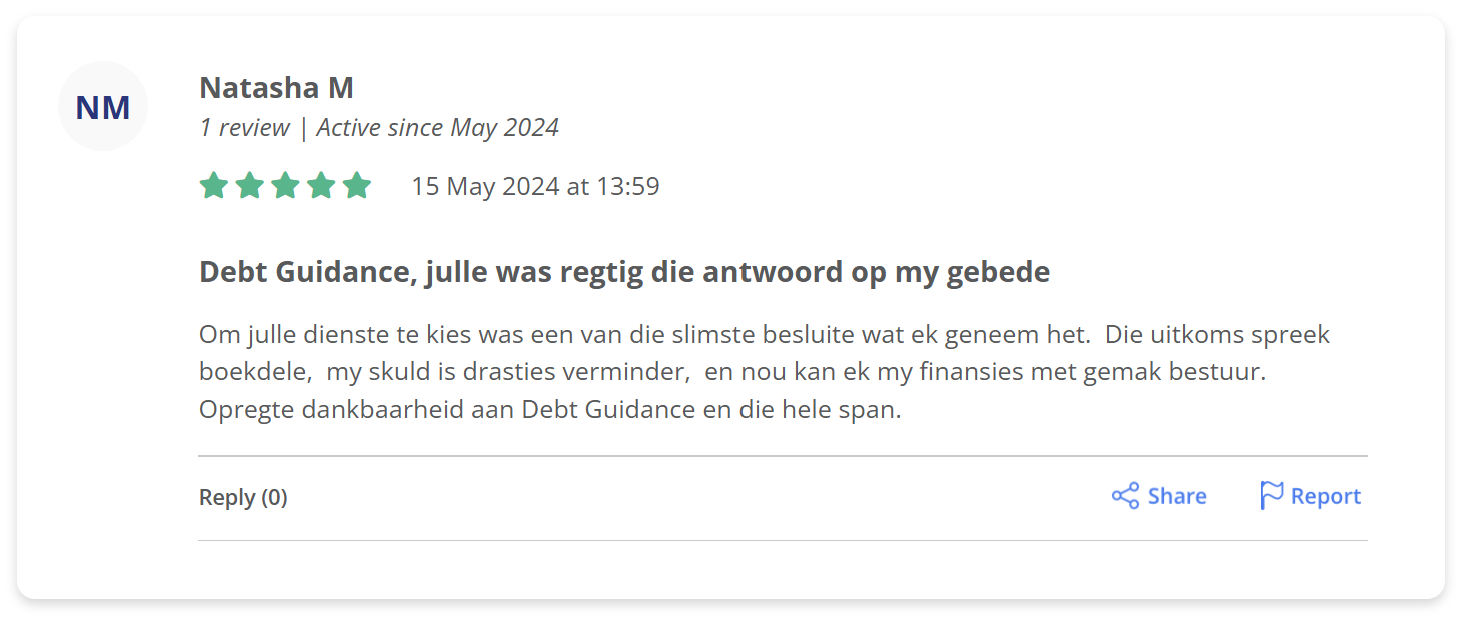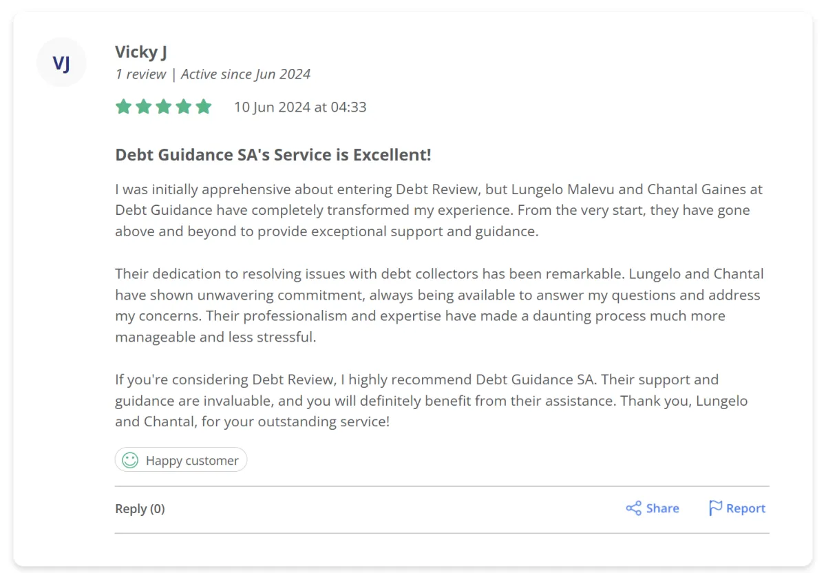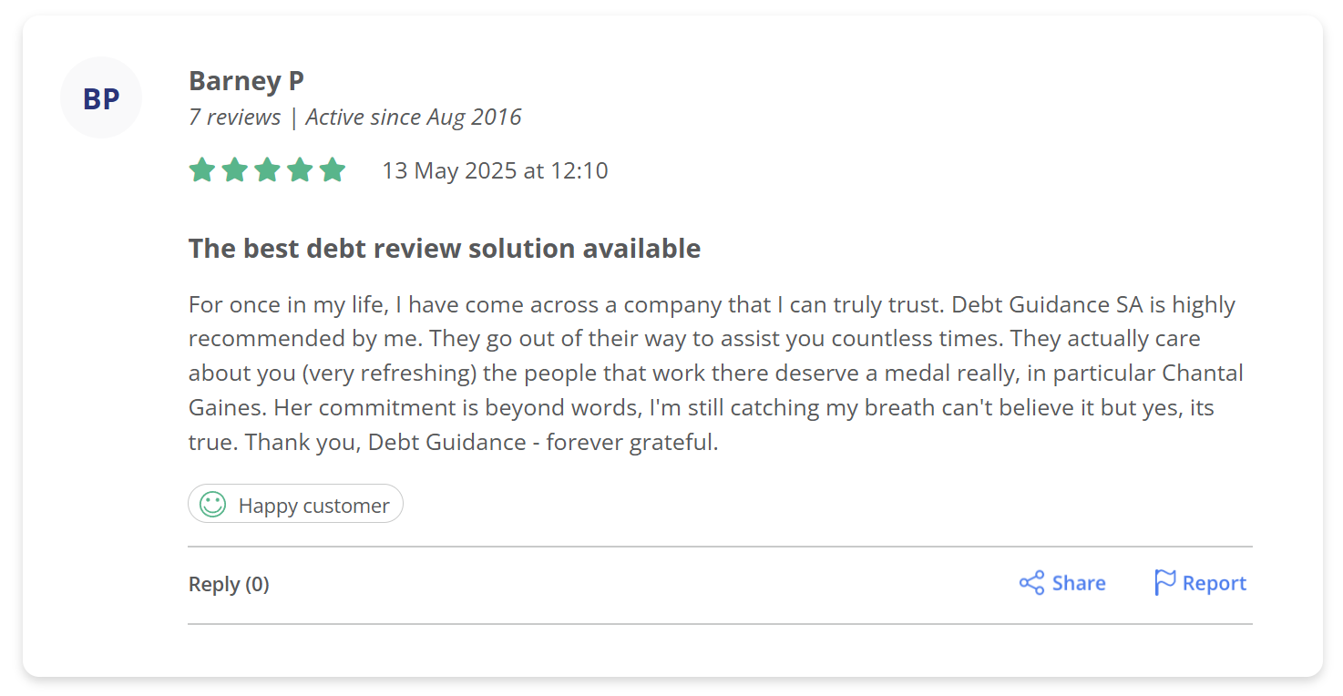 Our debt review process is designed to help over-indebted South Africans regain financial control.